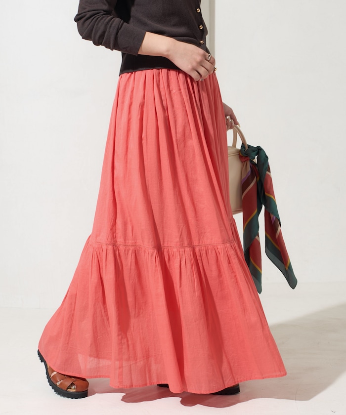 ●柔らかく軽やかな綿100素材で着心地の良いフレアスカート