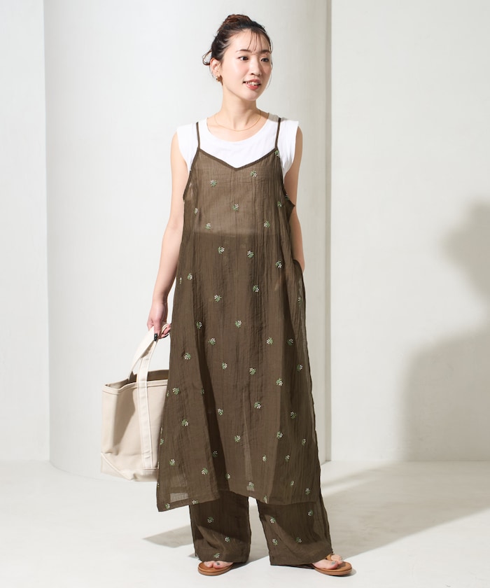 シアー×花柄刺繍がトレンドライクなキャミワンピ