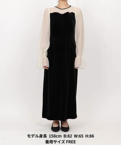 1314248900881:オーガンジーベロア切り替えパフスリーブワンピース