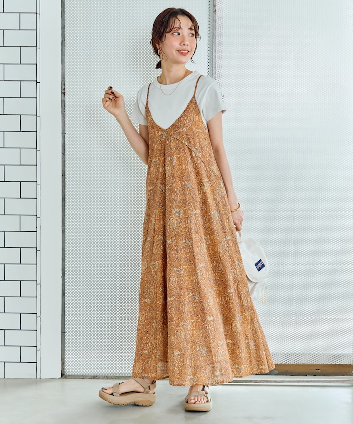 季節感のあるペイズリーワンピースは、デザイン性を引き立てたシンプルなアイテム合わせがおすすめ!