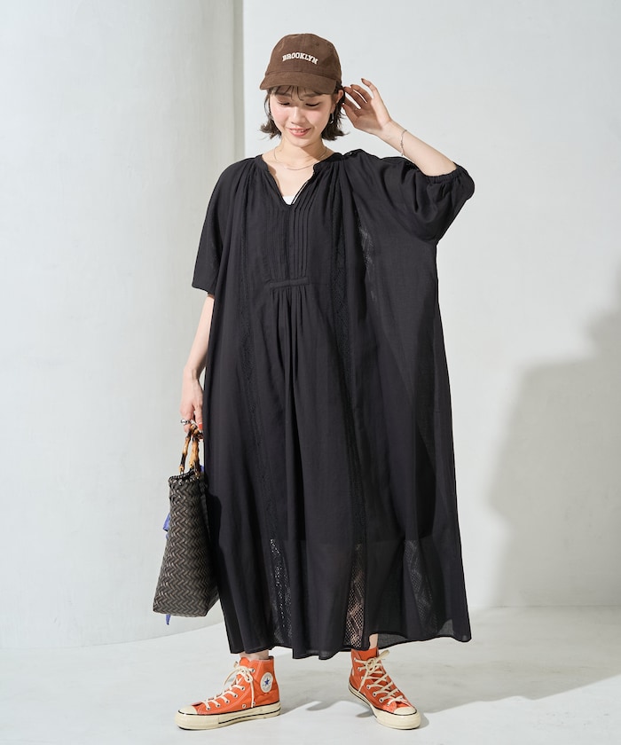 一枚でさらっと着るだけで決まるワンピースは、サンダルやフラットシューズで軽やかにまとめるのがおすすめ。