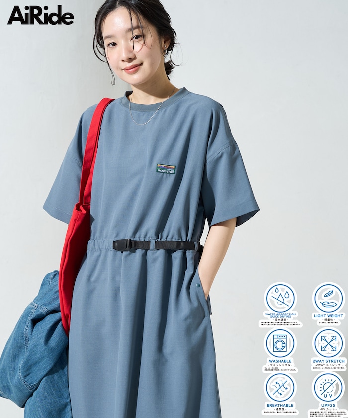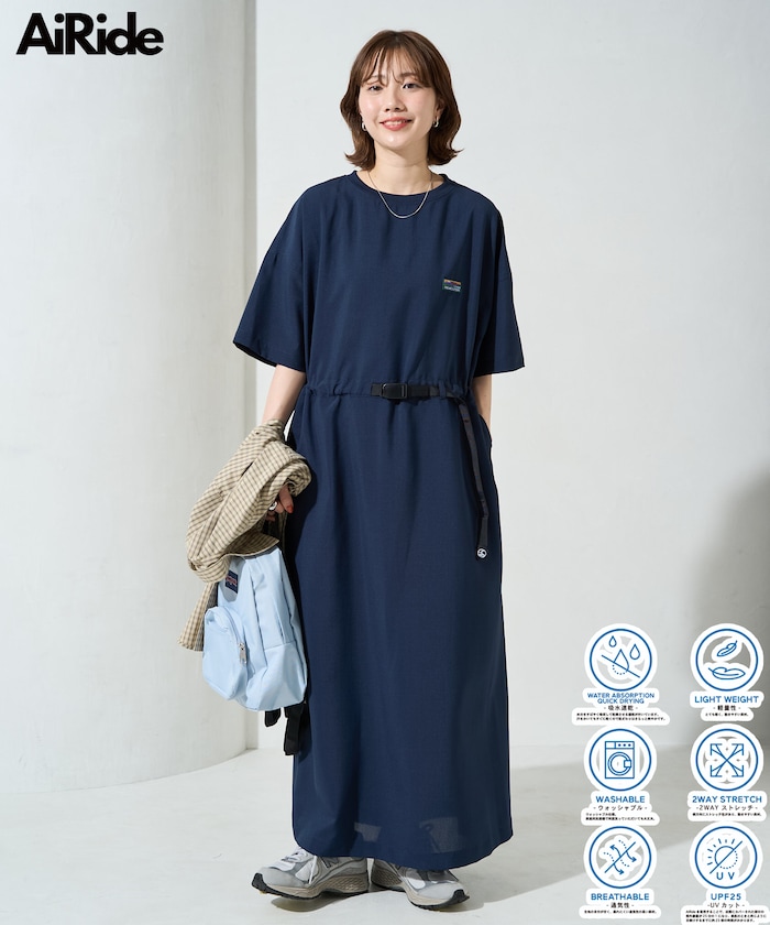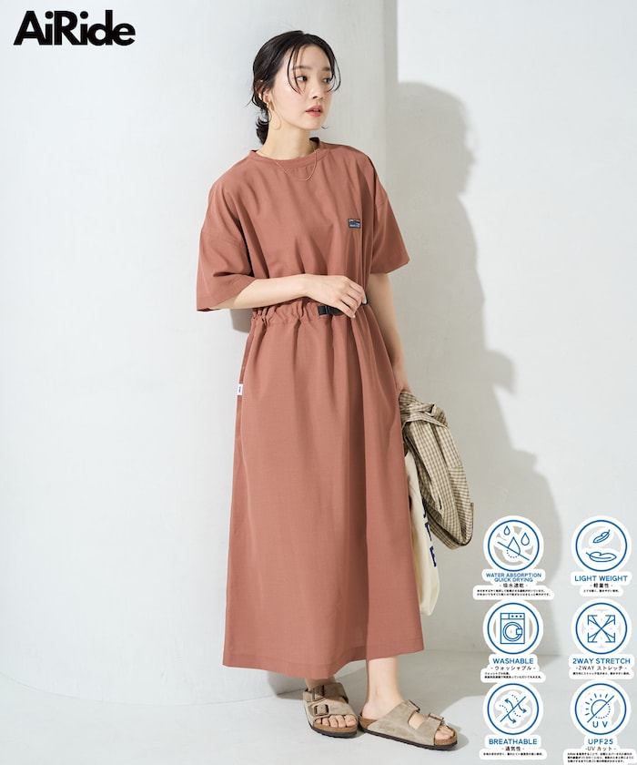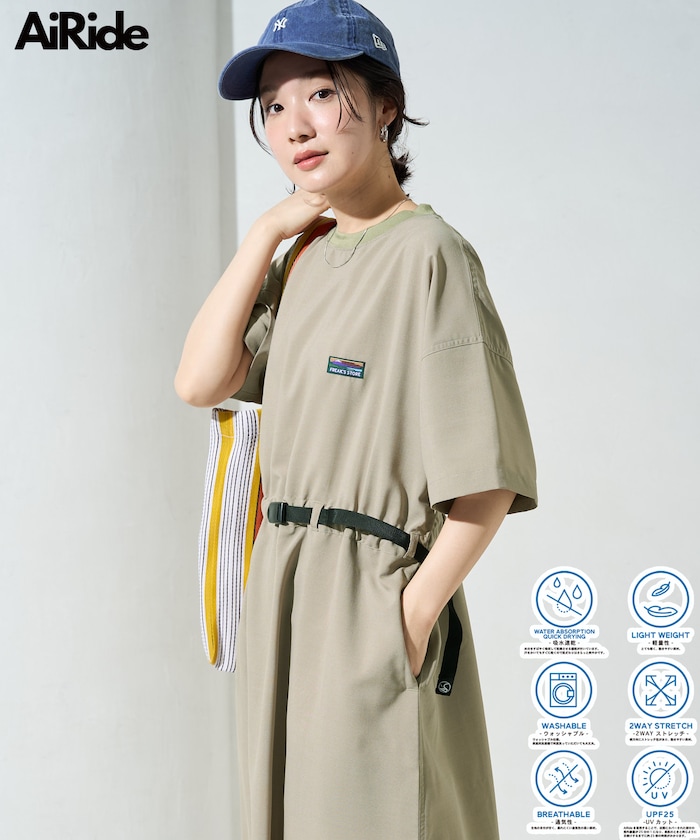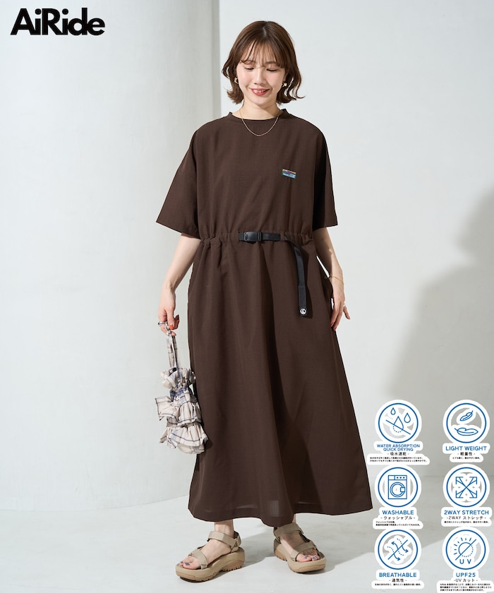 ● ウェビングベルト付きでシルエット調整ができ細見えスタイルも楽しめる