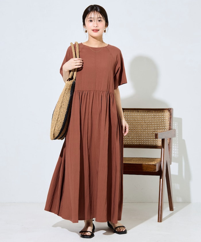 ●シンプルなデザインでスタイリングの汎用性が高いロングワンピース