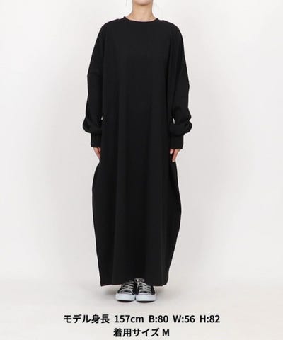 合わせるアイテム次第で雰囲気が様変わりするドルマンワンピース。