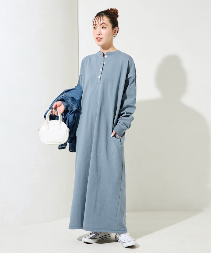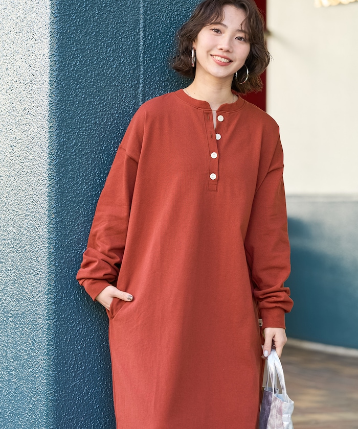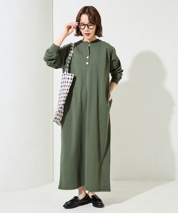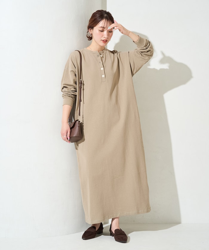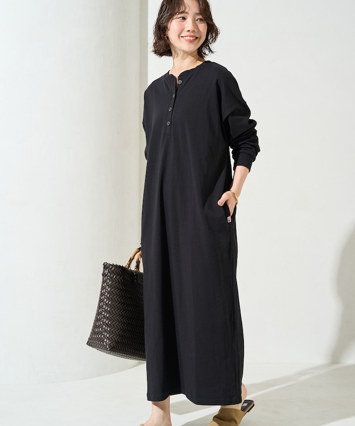 1316248900506:USAコットンヘンリーネックロングスリーブワンピース