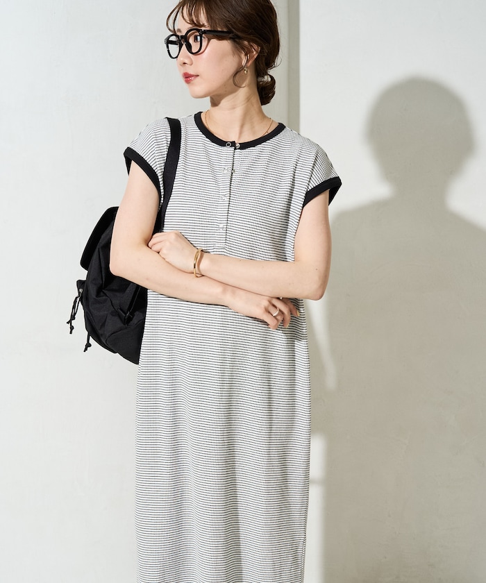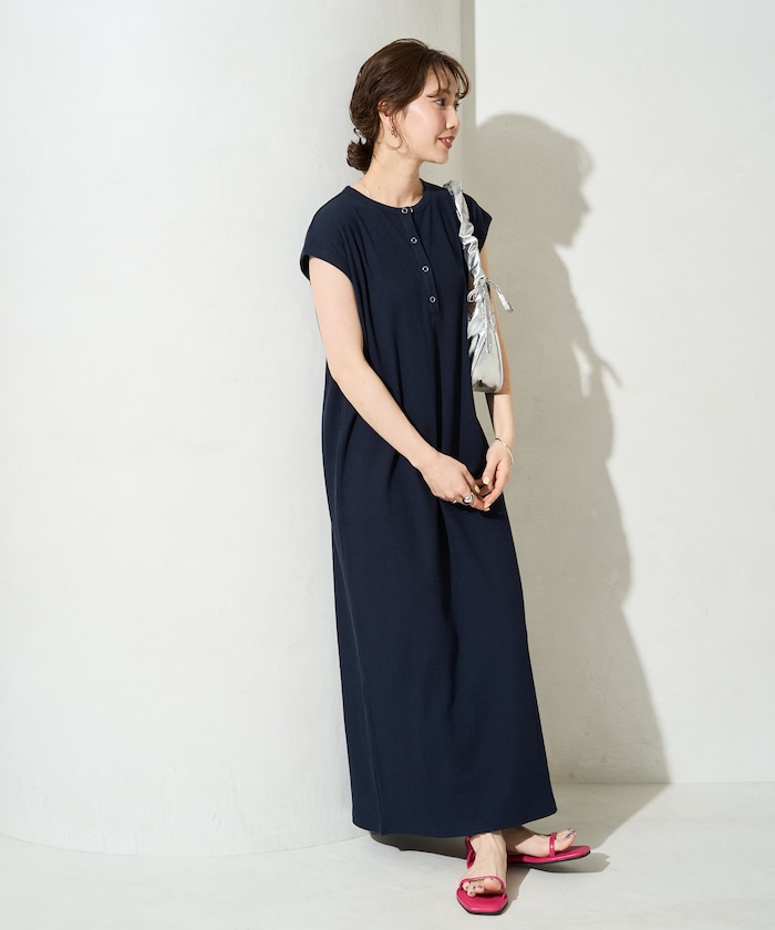 1316248900509:ヘンリーボタンフレンチスリーブワンピース