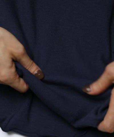 スラックスなどきれいめなパンツにシンプルにあわせるだけでも様になるデザインカットソーです!