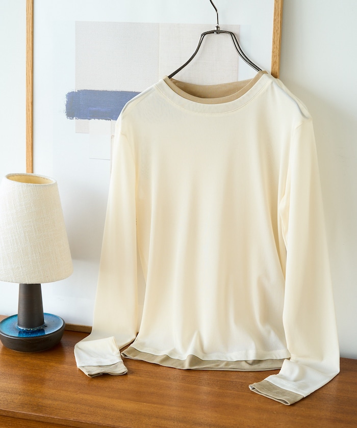 ●レイヤードしているように見える配色デザインで一枚でも着映え確定
