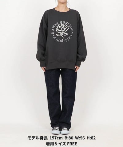 バラ刺繍がアクセントになるスウェットは、デニムやスラックスと合わせるだけでコーデが完成。