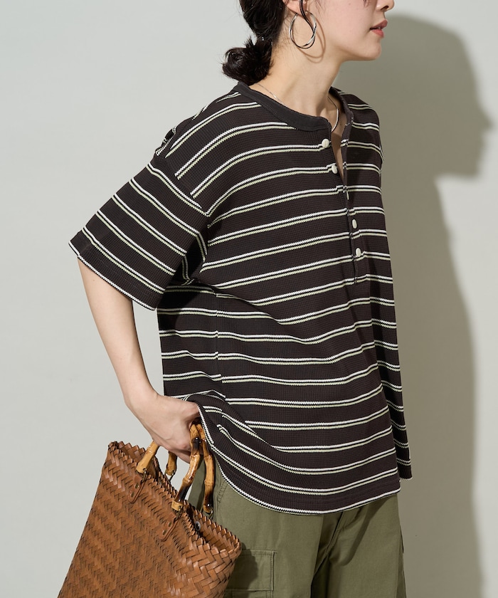 1323185200006:別注ワッフルボーダー半袖Tシャツ