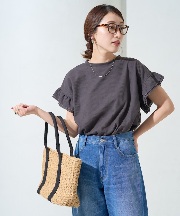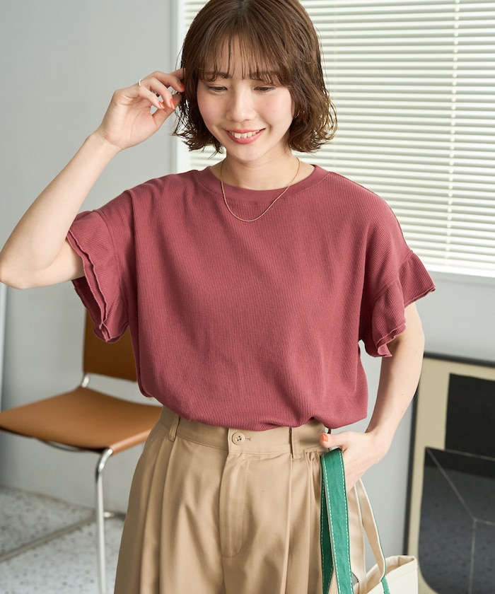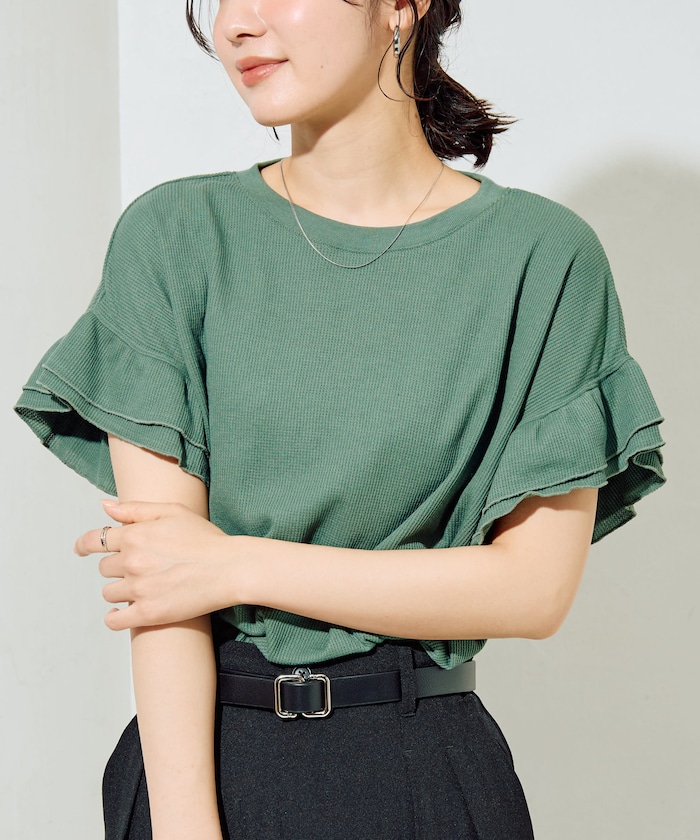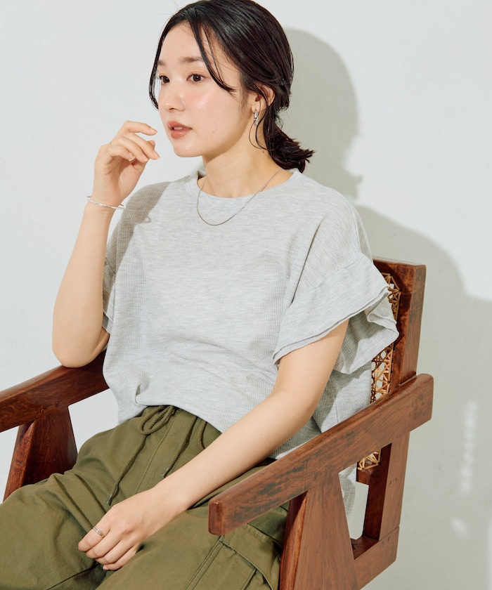 程よい女性らしさとカジュアルさが魅力のフリルワッフルTシャツ