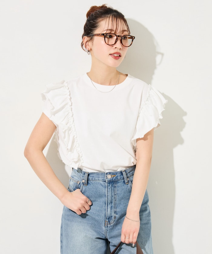 ほのかに甘さをプラスできるフリルTEE。