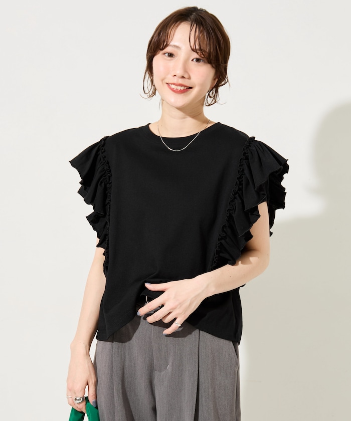 ●ふんだんにあしらわれたフリルがトレンドライクなカットソー