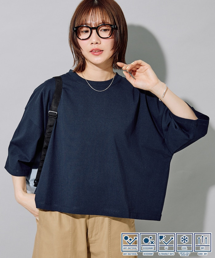 ●接触冷感や吸水速乾、UVカット機能で暑い日のお出かけも気負わず快適に過ごせる一枚