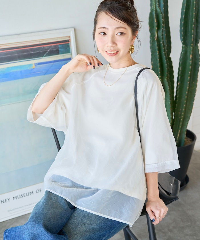 ●オーガンジーのシアー素材がトレンド感のあるレイヤードデザイン