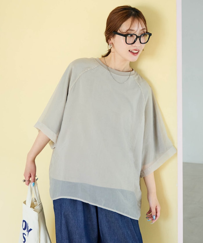 オーガンジーの透け感が今っぽい、抜け感も華やぎも叶うシアーT