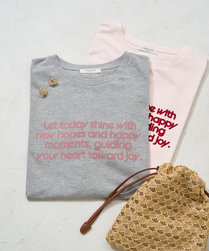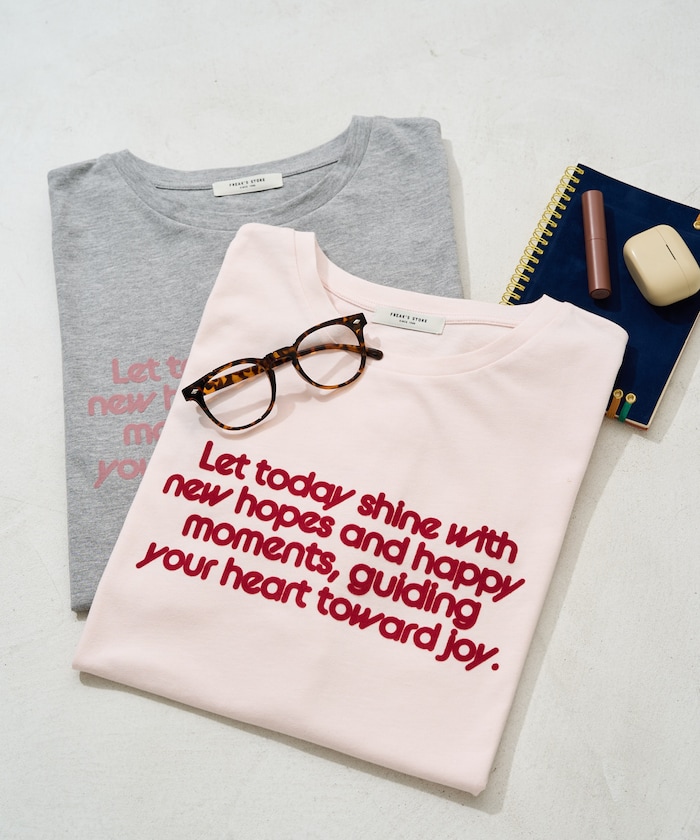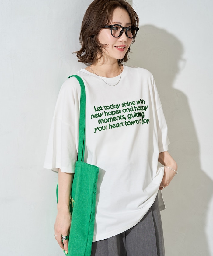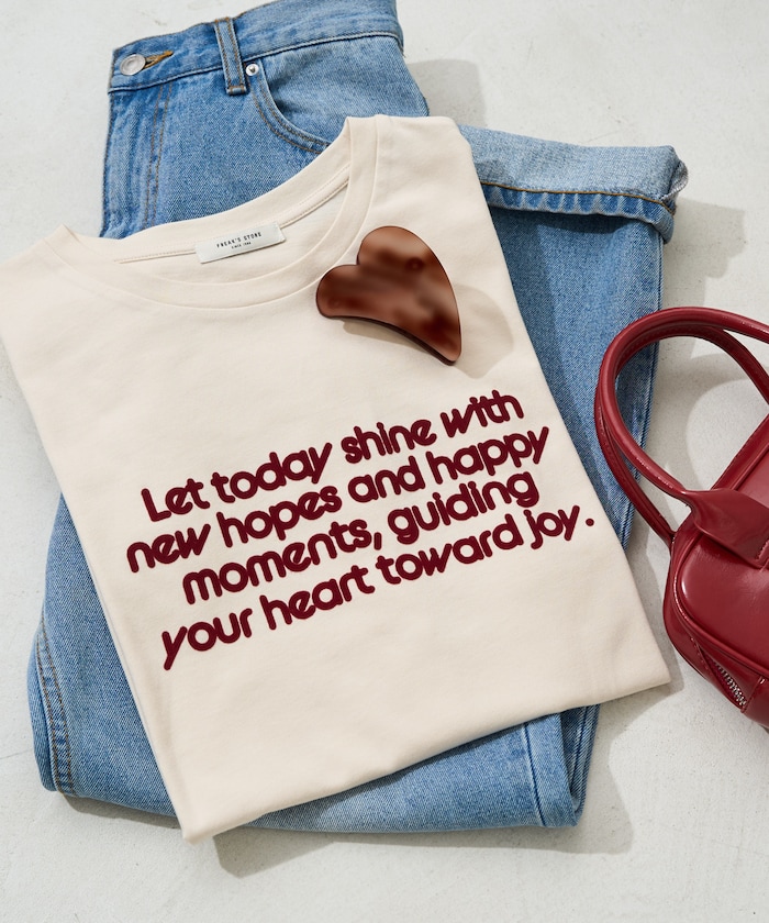 デニムやワイドパンツでラフに着こなしても、フロッキーのロゴのおかげでほどよく上品さのある印象に。