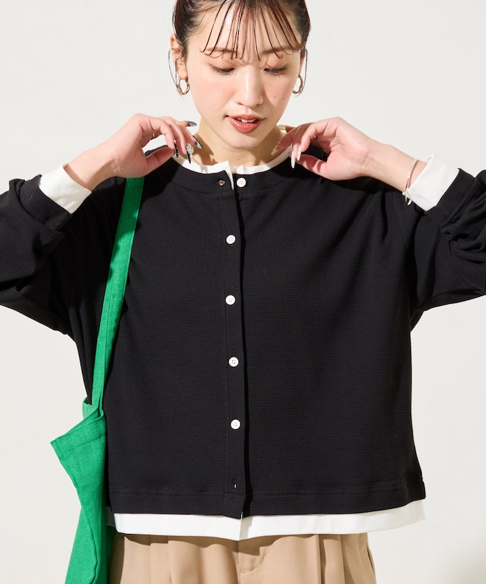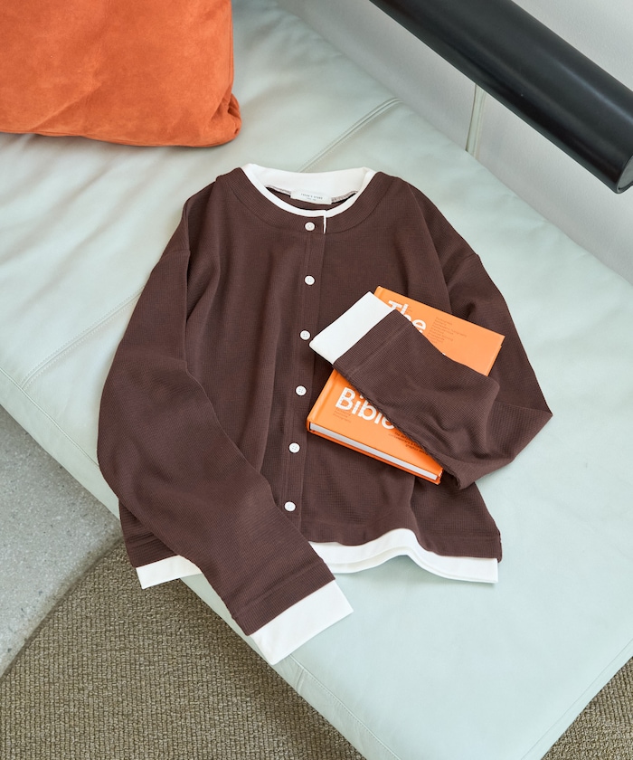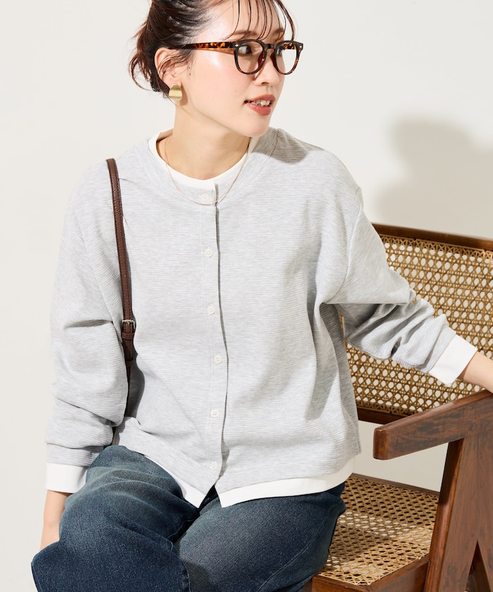 ●カーディガンと白Tをレイヤードさせたようなデザインが即こなれ