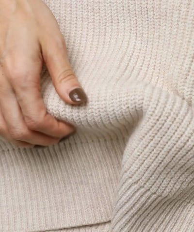 ニットの柔らかさを活かして、ロングスカートやプリーツスカートと組み合わせると上品でフェミニンな印象に。