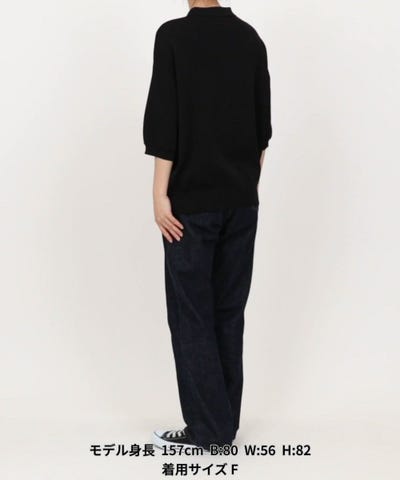 合わせるボトム次第で雰囲気がガラッと変わる半袖ポロニット。