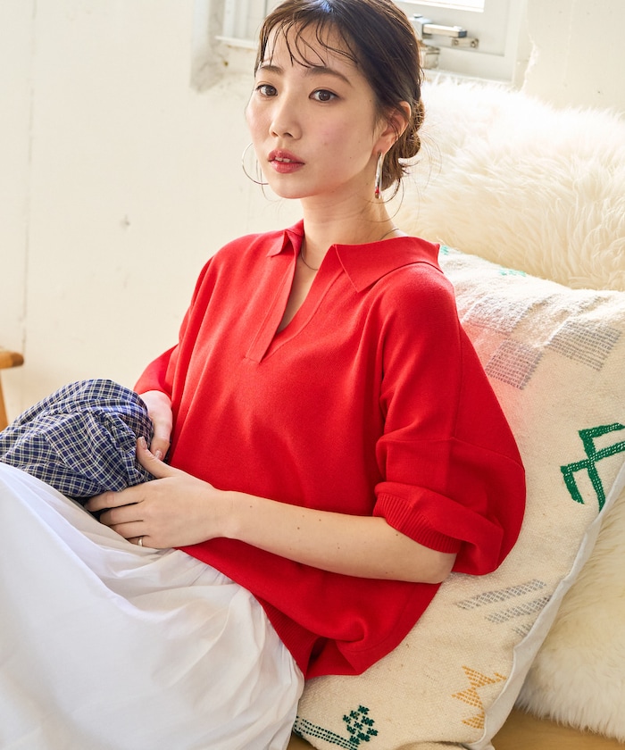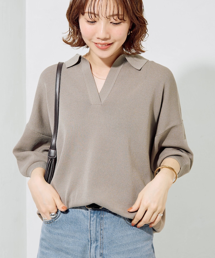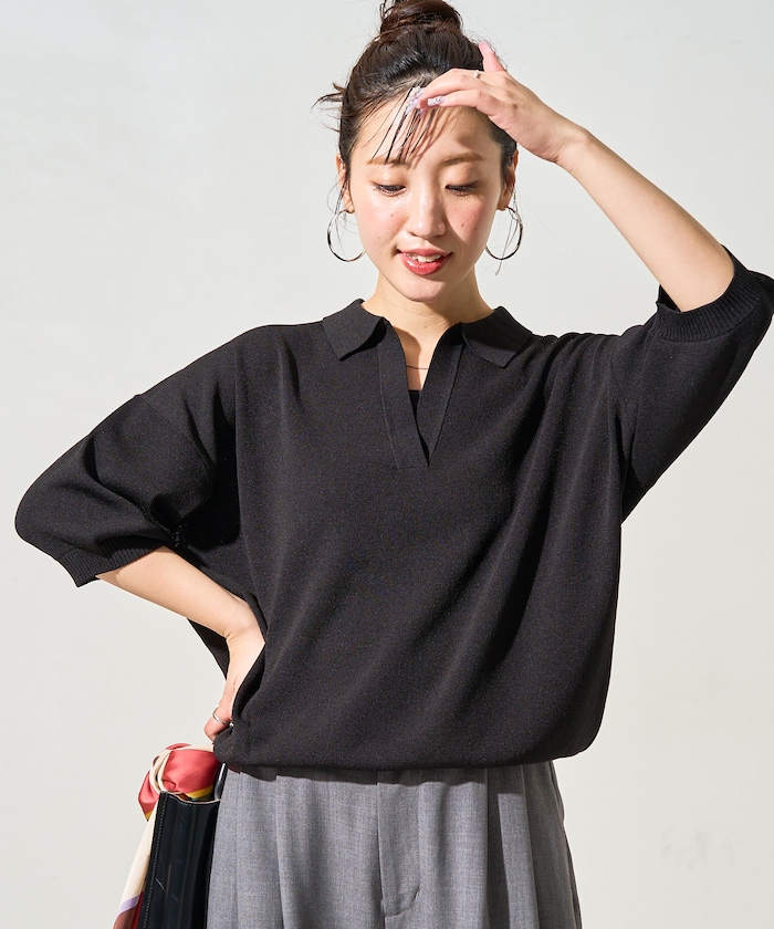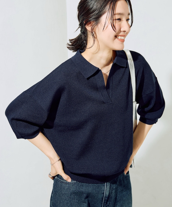 1333248900135:半袖ポロ襟スキッパーサマーニット