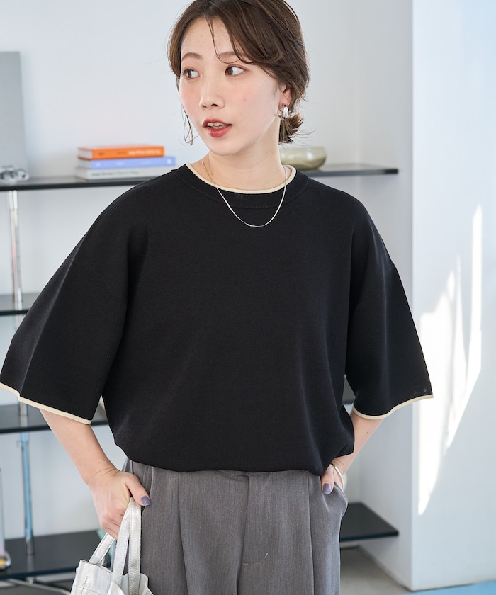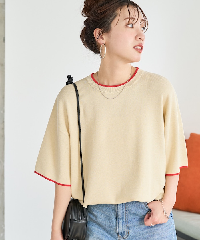 配色ラインでさりげないこなれ感、オンオフ頼れる高見えサマーニット
