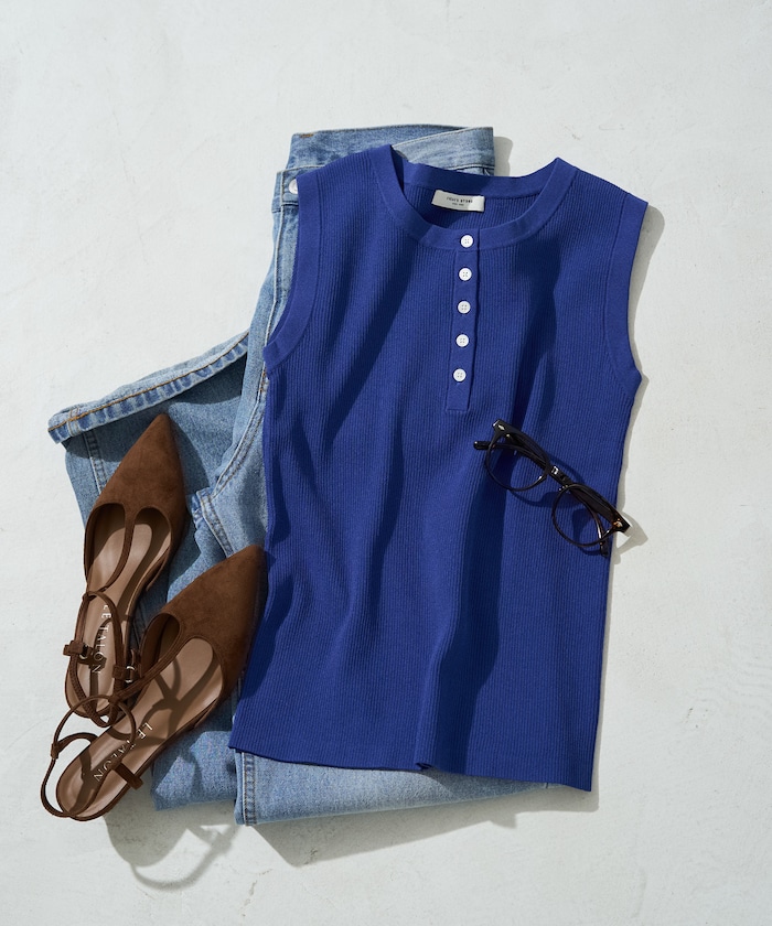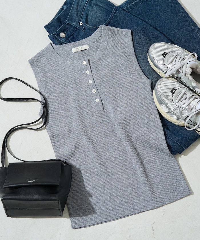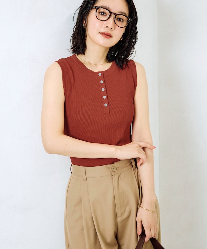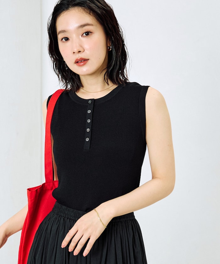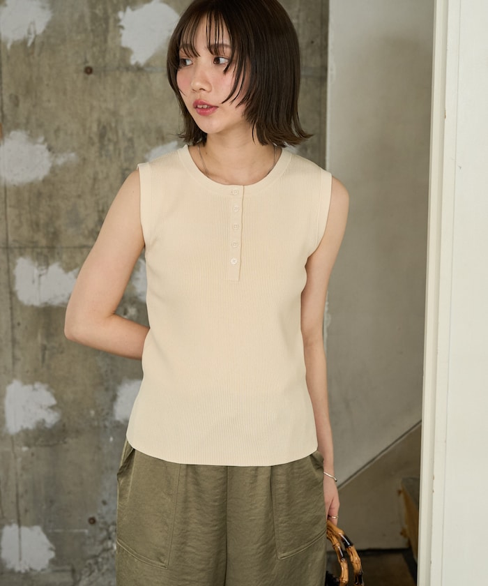 1333248900141:クールタッチヘンリーネックノースリーブニットトップス