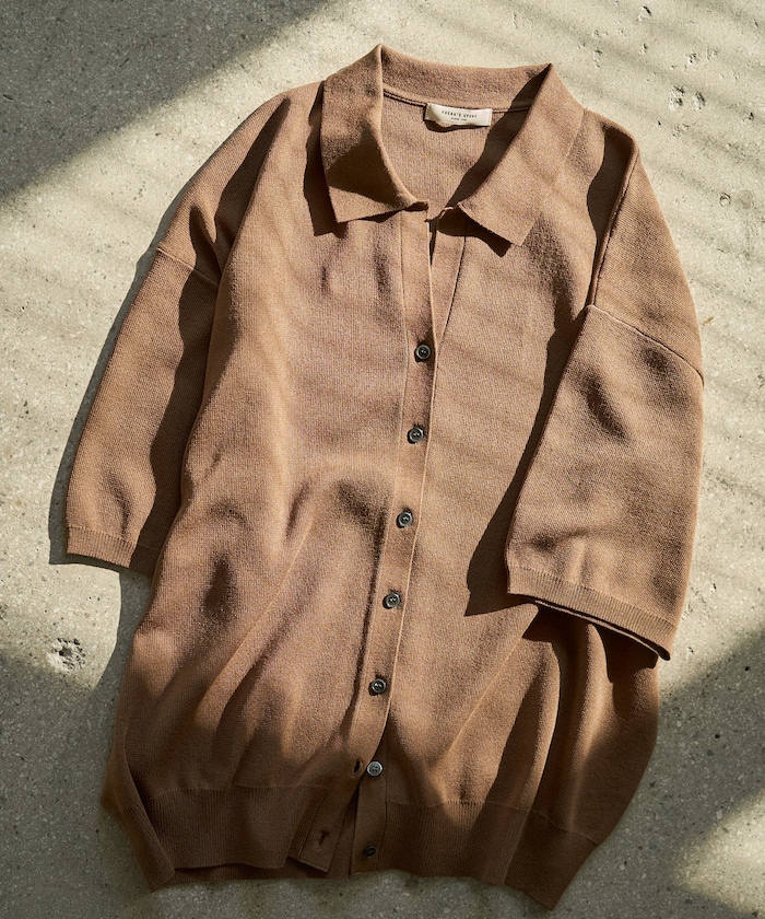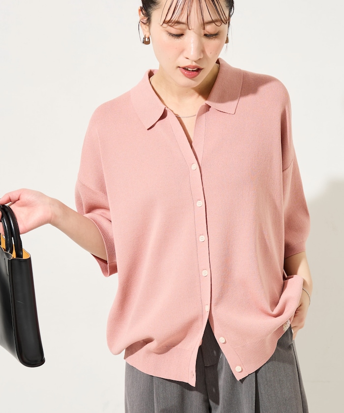 1334248900403:ポロ衿半袖ニットボタンカーディガン