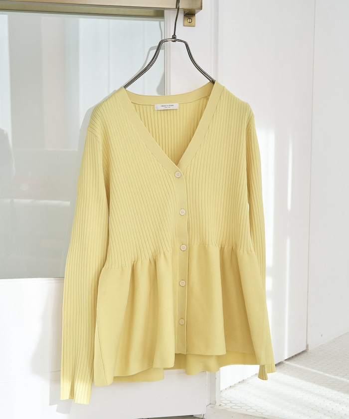 女性らしく春めいたペプラムニットカーディガン