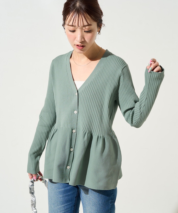 ●体型カバーとトレンドを兼ね備えたペプラムカーデ