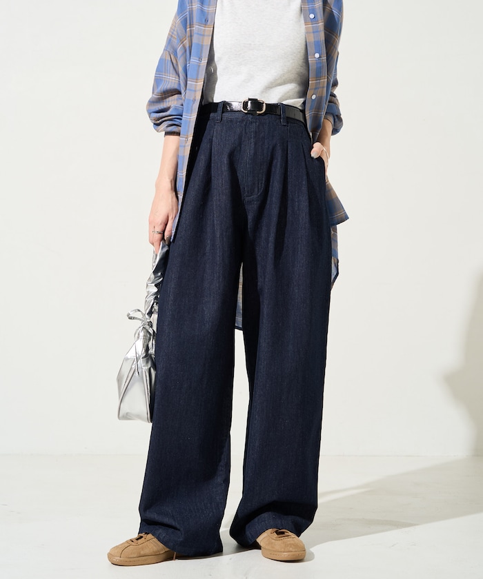 足元はヒールで端正さとゆるさをミックスさせても良し、スニーカー合わせでずるっと着こなすのも素敵です。