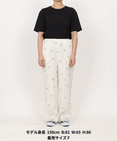 花柄の刺繍が大人かわいいワイドイージーパンツ。