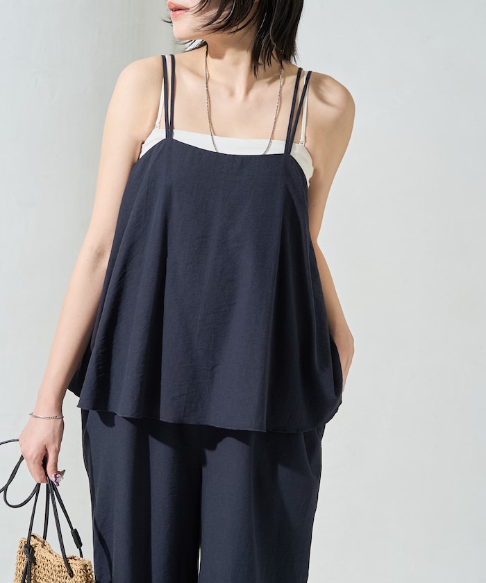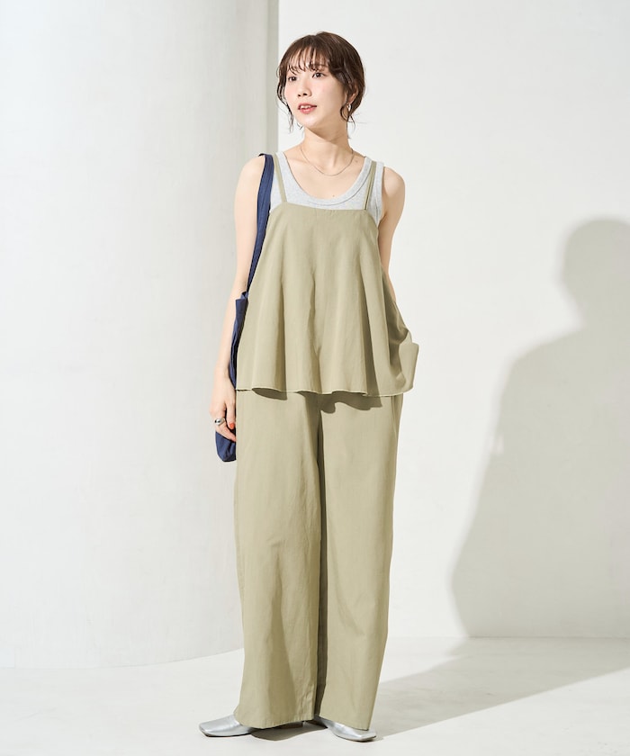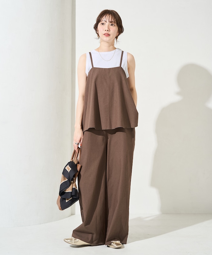 麻タッチで涼しく着られるキャミサロペット