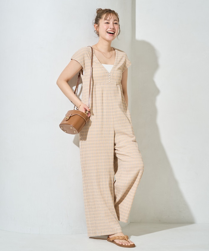一枚で決まるオールインワンは、スニーカー合わせでラフに着こなすのがおすすめ。