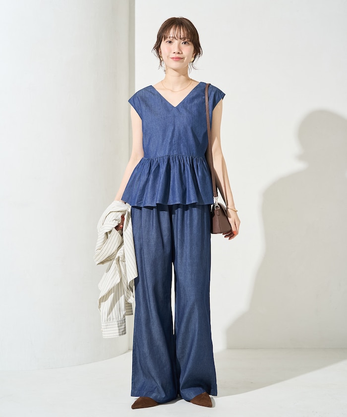 ●レーヨン混の柔らかくとろみあるデニムセットアップ