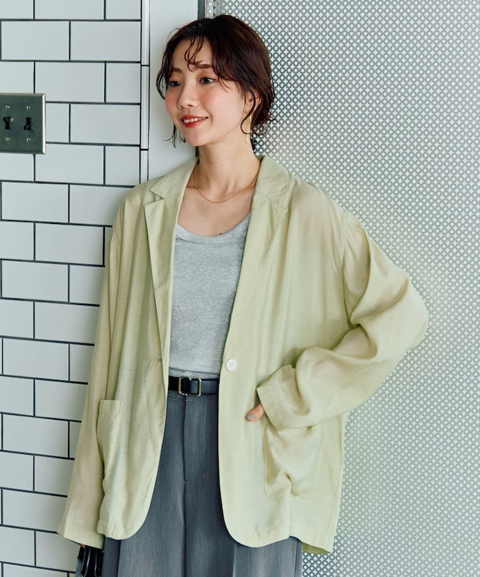 Tシャツやタンクトップの上にさっと羽織るだけで、大人カジュアルが完成するライトジャケット。