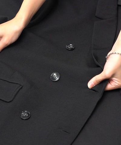 ●ダブルボタンと少し長めの着丈がマニッシュなデザイン