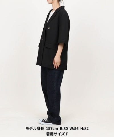 ●マニッシュな印象のダブルボタンの半袖ジャケット