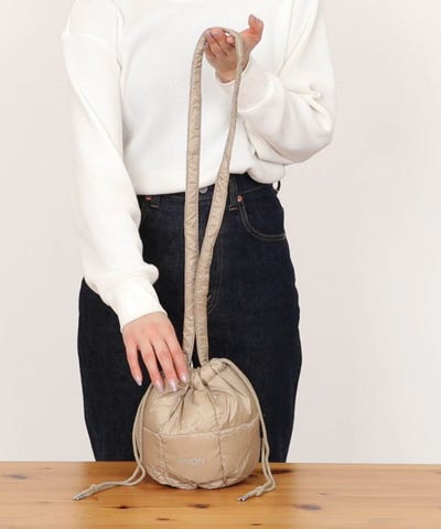 コロンとしたフォルムが可愛らしい巾着ダウンバッグ