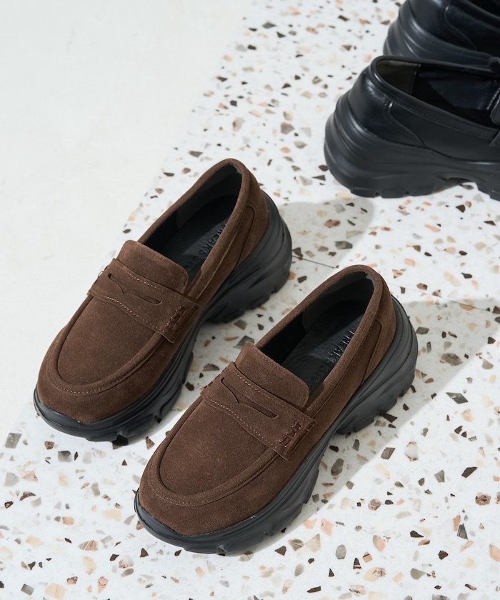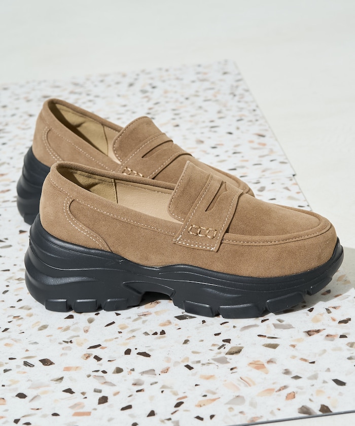 スタイルアップも見える厚底ローファースニーカー