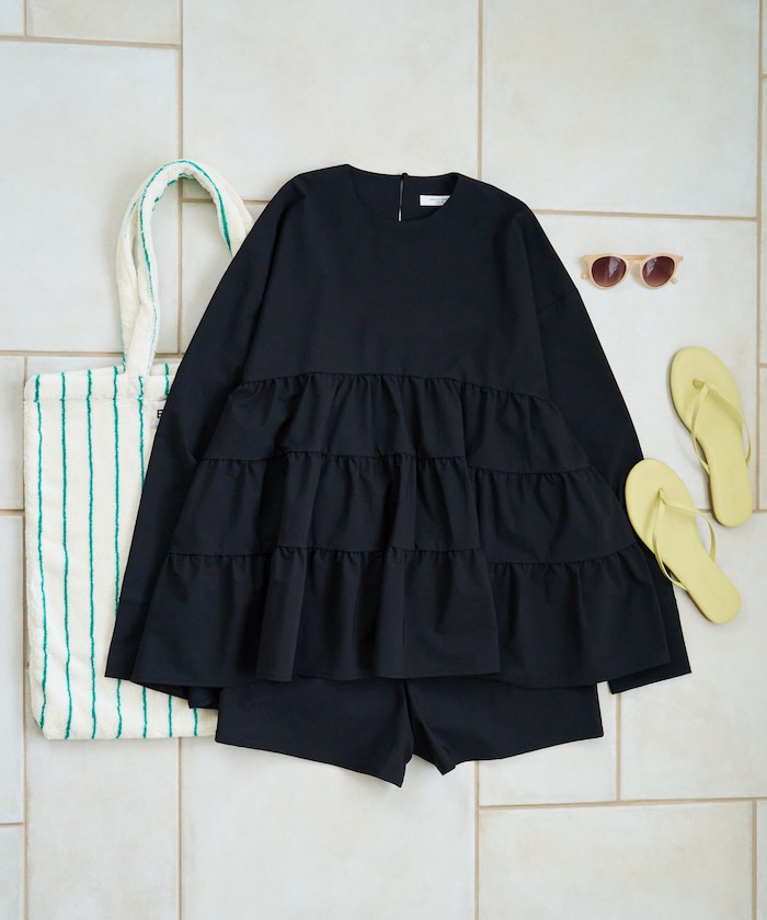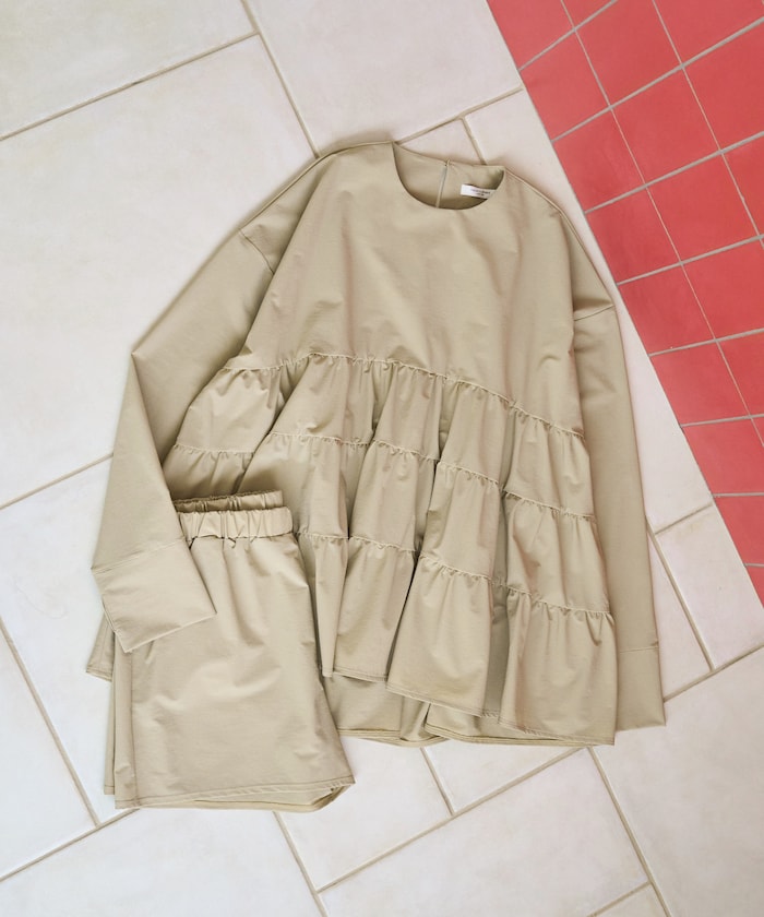 ●ふんわりと広がるシルエットで女性らしさを演出しつつ、体型カバーも叶う一着