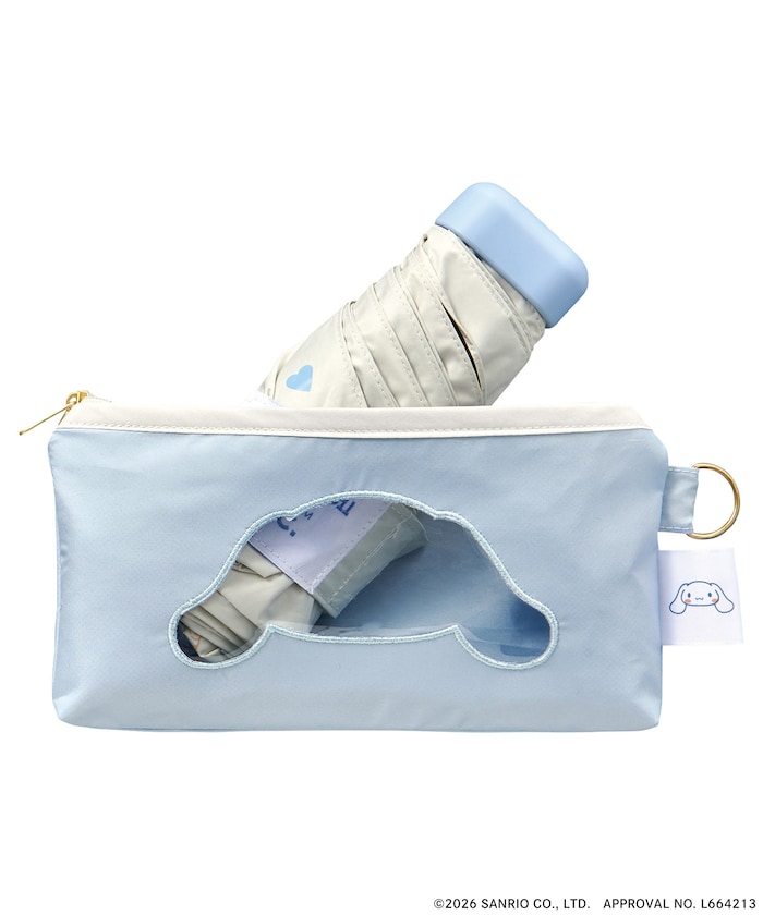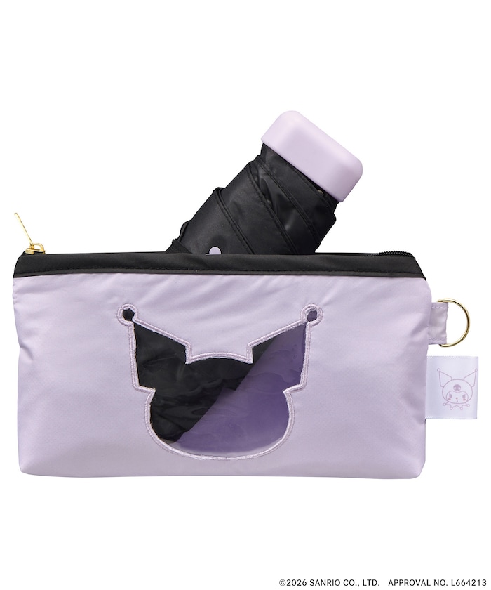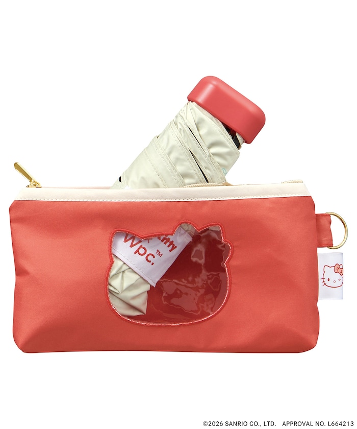 キャラクターの形のクリア窓がついたポーチ型ケース付き!ハートが散りばめられたキュートな日傘