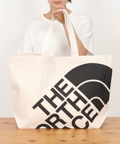 ビッグロゴがスタイリングのアクセントにもなる、オーガニックコットン製の大型トートバッグ