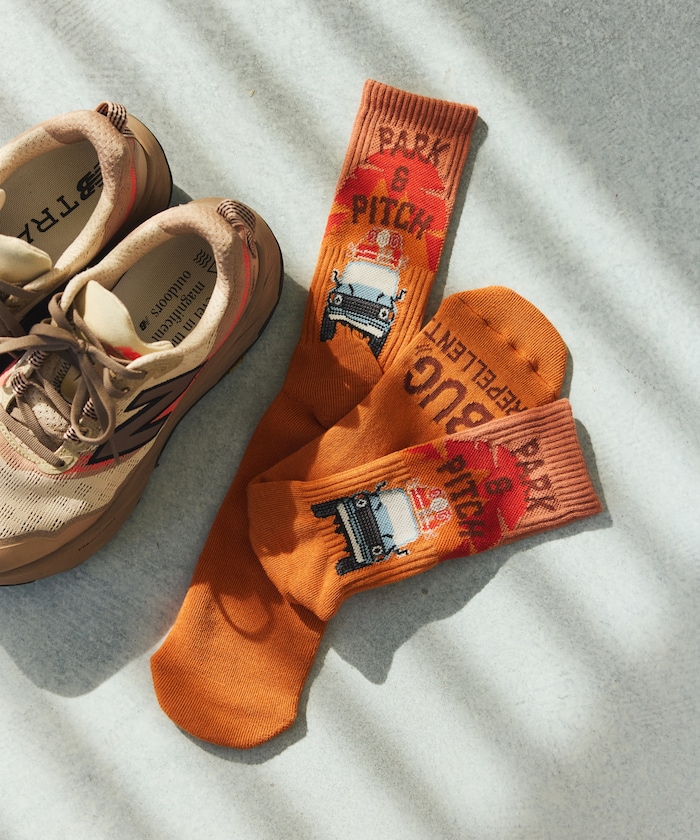 ●足元だけでなくふくらはぎ側にもデザインを施した見せソックス仕様でコーデのアクセントとして活躍