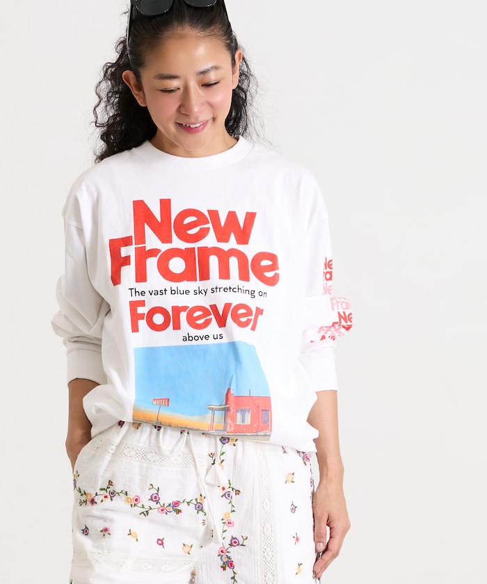 ●ゆったりシルエットのシンプルなロンTに大きめのロゴとフォトプリントを施しました。