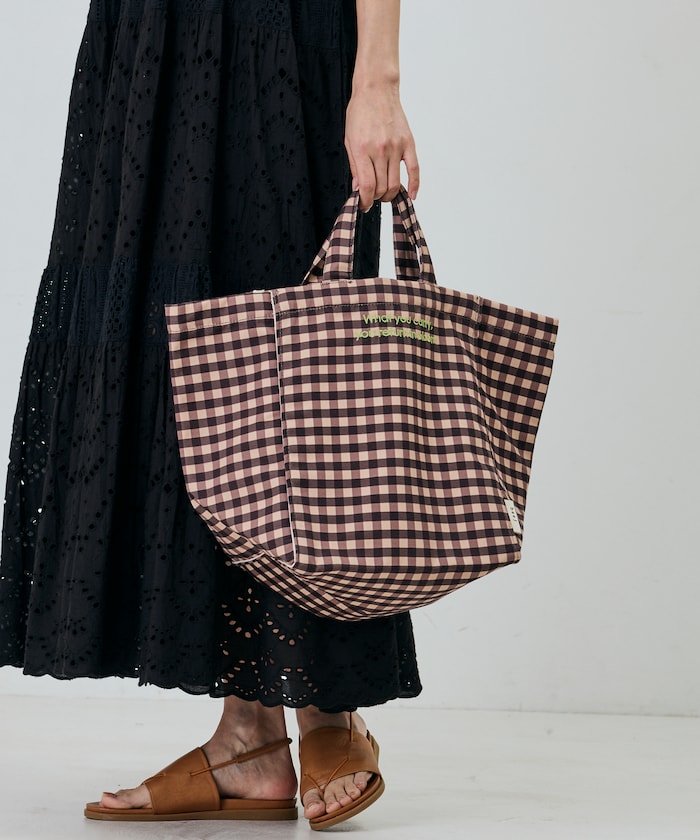 華やかなギンガムチェックが目を引く2WAY大容量トート