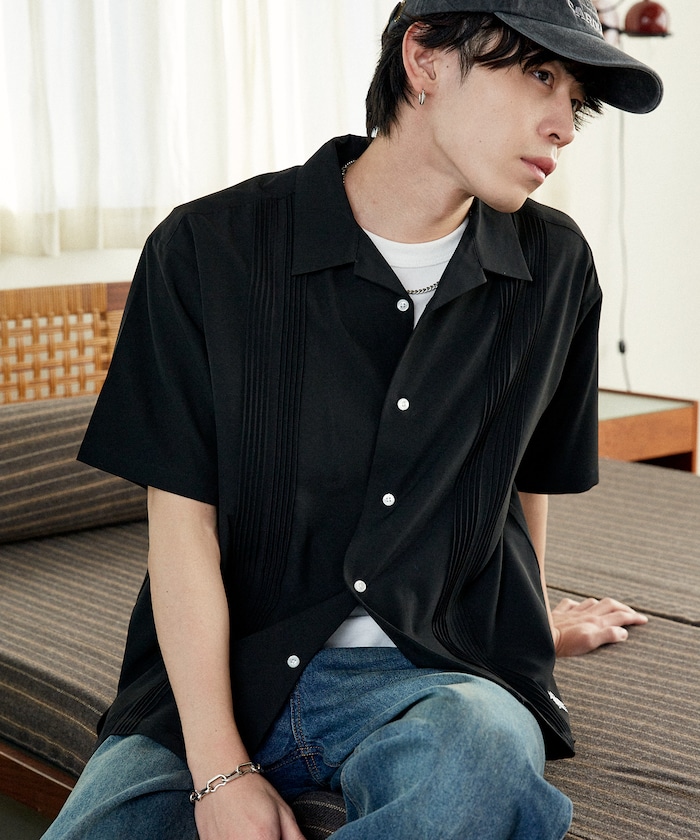 フロントのピンタックが上品なアクセントになる、半袖シャツ