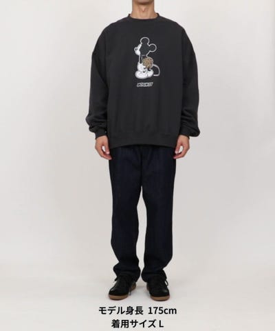アウターを羽織る際は、ミッキーのグラフィックが隠れないように、ゆったりとしたサイズのアイテムを選ぶのがポイントです。