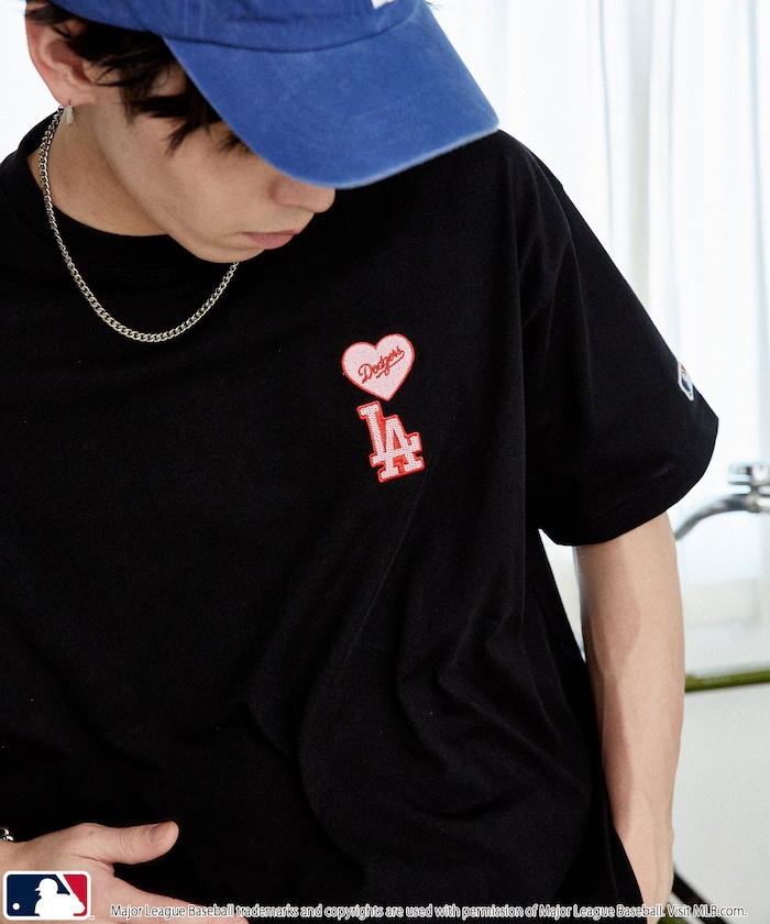 ●ドジャース、ヤンキース、パドレスのチームロゴとハートマークを組み合わせ、刺繍ならではの立体感と高級感を楽しめる胸元のワンポイントデザイン