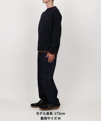 ●U.S. POLO ASSN.のブランドロゴ刺繍が施された、フェイクレイヤードデザインが特徴のニット。